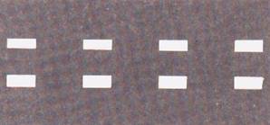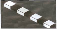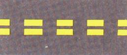خط متقطع متراص (خط توجيه) : يشير إلى ظهور خط فاصل متواصل ، على سائق المركبة التوجه بمركبته إلى المسلك الأيمن قبل بداية الخط الفاصل المتواصل . |