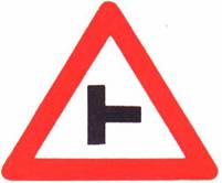 | اندماج شارع فيه حق الأولوية مع طريق جانبية من اليمين (ممنوع الاستدارة إلى الطريق الجانبية) |