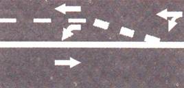 خط متقطع بجانب خط فاصل متواصل : يجوز اختراق الخطوط إذا كان الخط المتقطع على يمين الخط الفاصل المتواصل وإذا كانت الطريق خالية . |