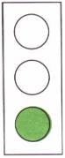 ((ضوء أخضر)) تقدم ! يجوز السير إلى الأمام والى اليمين والى اليسار ما لم تكن هناك شاخصة إرشاد فوق الآلة الضوئية والتي تشير إلى خلاف ذلك و إذا ظهر ضوء اخضر متقطع فمعناه بأن الضوء الأخضر سينتهي ويظهر بعده الضوء الأصفر |