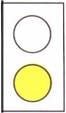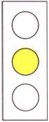 آلة ضوئية خاصة للمركبات قبل ممر مشاة فيه آلة ضوئية للمشاة أو قبل أي عائق آخر في الطريق ((ضوء أصفر)) (أ) ضوء اصفر متقطع : تقدم بانتباه مع مراعاة أحكام الشاخصات (ب) ضوء اصفر ثابت : كمدلول الضوء الأصفر في شاخصة هـ-5 |